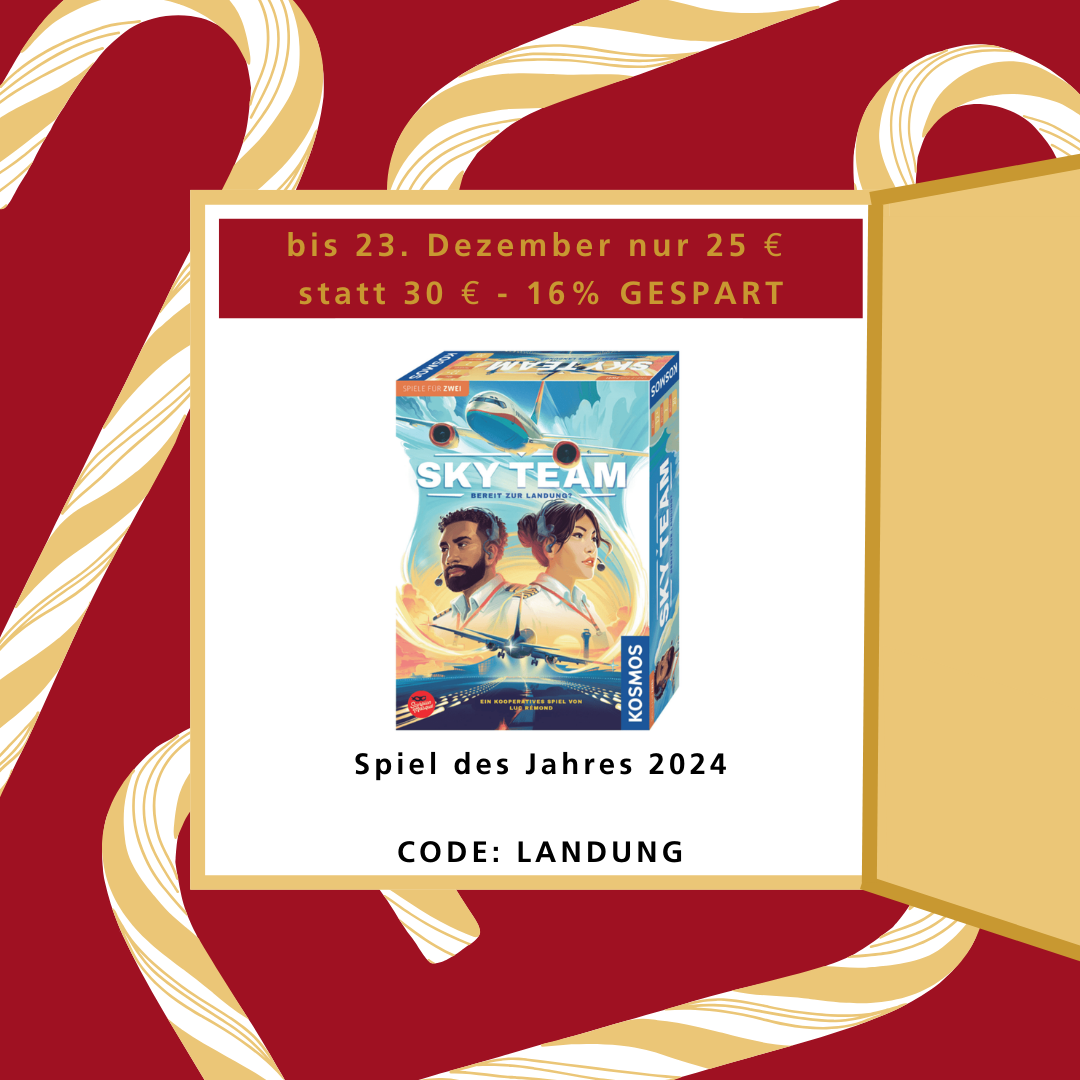 Bereit zur Landung? In dem kooperativen Spiel schlüpft ihr zu zweit in die Rollen einer Pilotin und eines Co-Piloten, die gemeinsam ein Flugzeug steuern. Beweist euer Können als eingespieltes Team am Steuer des Jumbo-Jets. Seid ihr bereit für den Nervenkitzel? Dann erlebt Sky Team - das ultimative Spiel für angehende Piloten und Pilotinnen ab 12 Jahren.