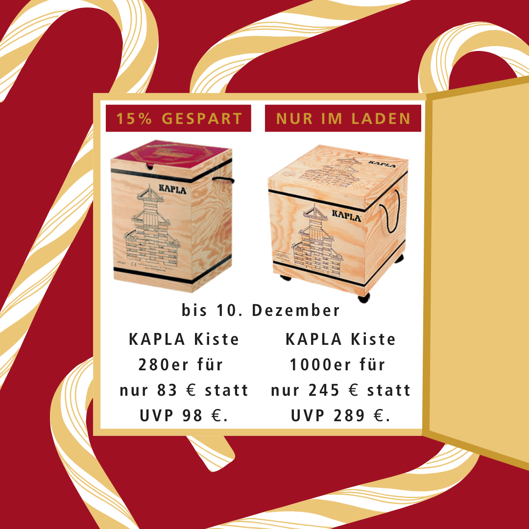 Bis einschließlich 10. Dezember sparst Du mit dem Code KAPLA15 15% auf die 280er und die 1000er Kiste!