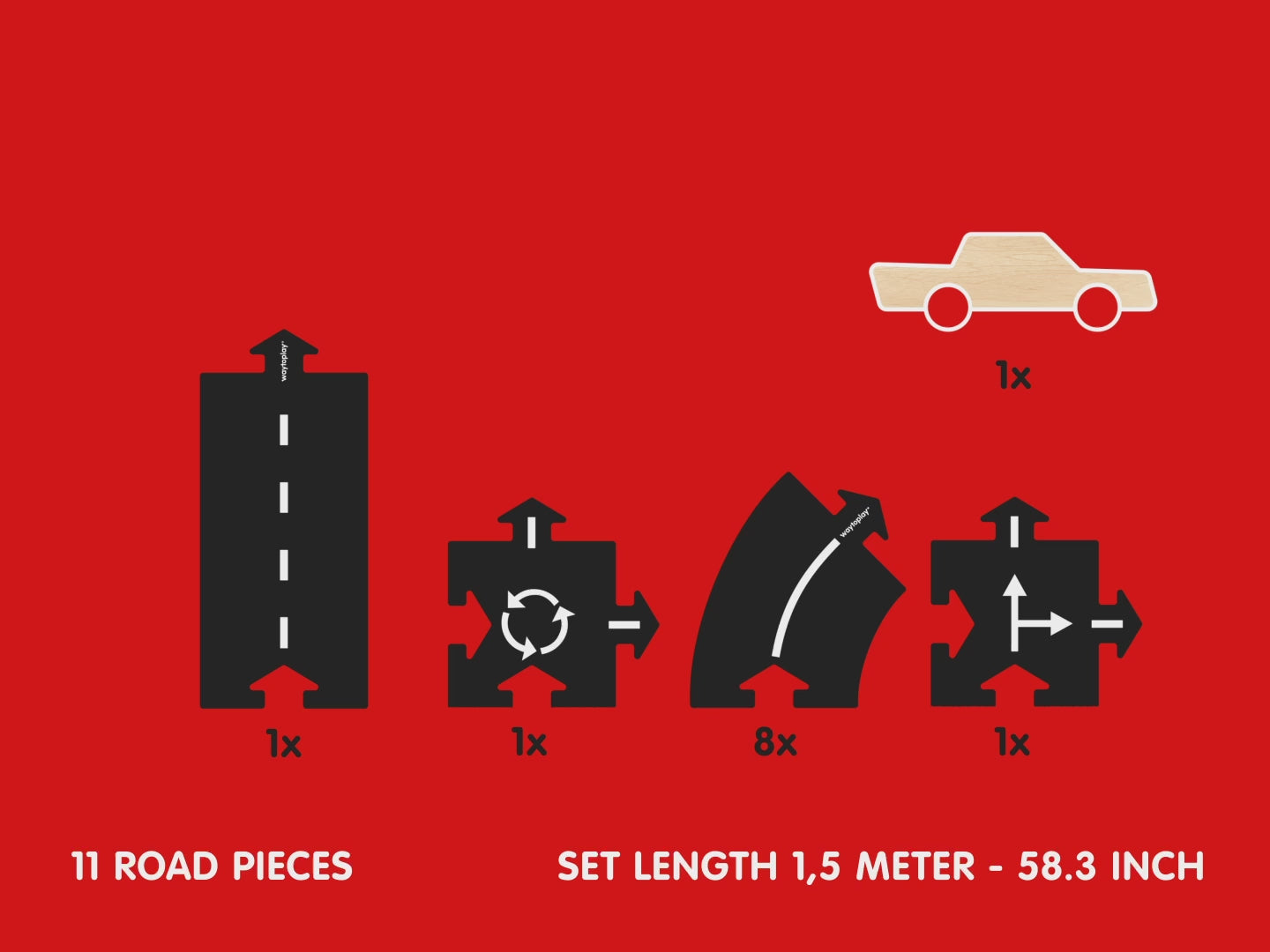 8 Kurven, 2 Kreuzung und 1 Gerade plus 1 Holzauto